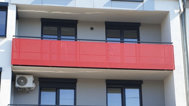 #pulverbeschichtung #geländer #lochblech #qg1540 #db703 #WPC #bodenbelag #verkehrsrot
