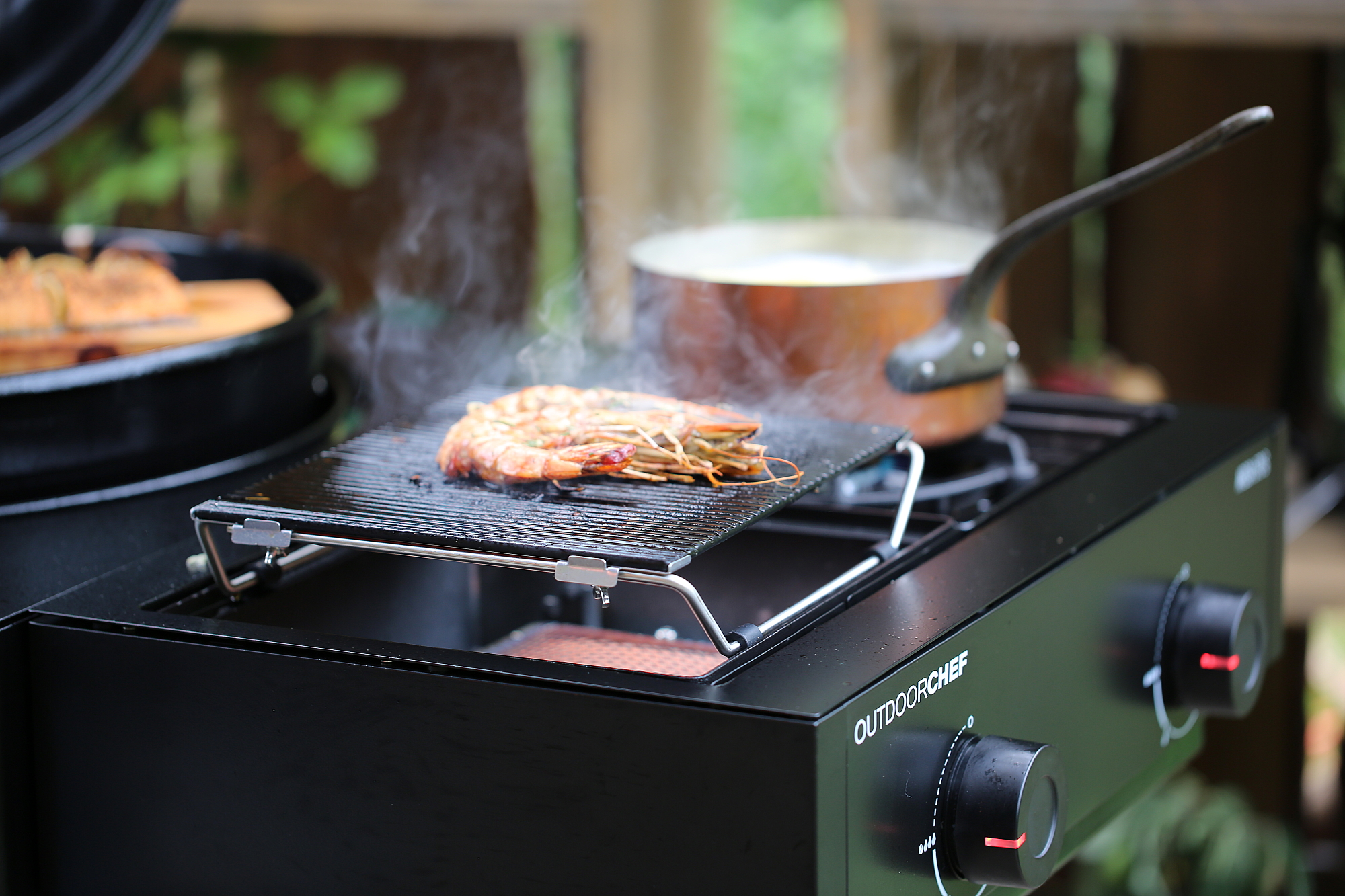 - Mit Blazing-/Cooking Zone: 900°C Infrarotbrenner und Seitenbrenner mit höhenverstellbarem Topfständer